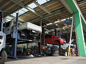お客様の大切なお車の点検整備は自社整備工場を持つ車のたいせいにお任せください。車のたいせいは国土交通省認証整備工場です!!